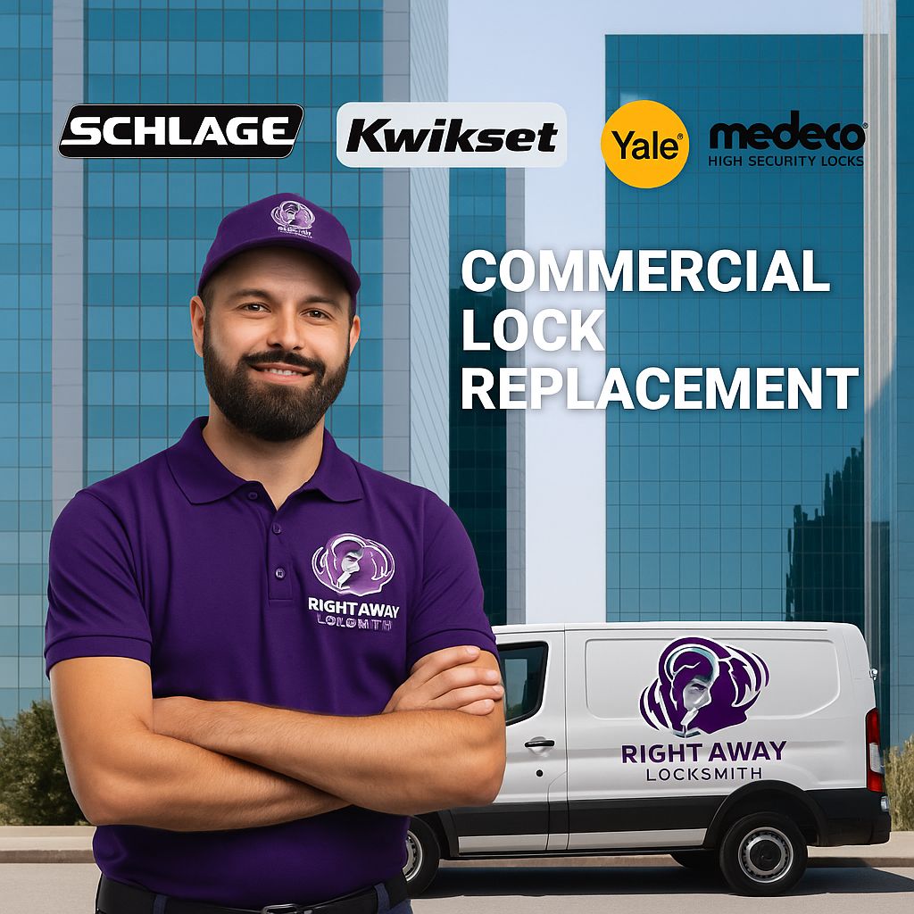 When it comes to keeping your business safe, every detail matters. At Right Away Locksmith, we specialize in commercial lock replacement, office rekeying, and high-security lock installation for companies across Atlanta and Alpharetta. From small offices to large corporate buildings, our locksmith experts deliver reliable, fast, and professional service you can count on.